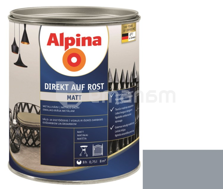 ემალი ანტიკოროზიული Alpina Direkt Auf Rost Matt მოვერცხლისფრო ნაცრისფერი 0.75 ლ